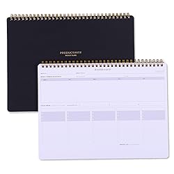 - Take your to-do list to the next level. If you want to stay organized every week, this great dashboard spiral-bound notebook is just what your life needs. The 8.5×11in Power List Deskpad is a mega to-do list, weekly planner, and prioritization tool all in one. It features an undated 5-day weekly schedule so you can plan your events, appointments, deadlines, and more with structure and ease. The spiral project notepad has double-sided pages, providing you with twice the value. It includes 5 focus areas where you can list your main goals, projects, or clients that you would like to focus on for the week. With an action plan which comes in the format of a to-do list, it will help you stay organized and on top of things. On top of that, it comes with weekly theme and highlights for at-a-glance planning. Prioritize your daily tasks and organize your day in a way that works perfectly for your schedule and your work. The pad also features a ‘parking lot’ for ideas that aren’t essential to do now so that you don’t derail your week – while always moving you in the right direction of towards your goals. Whether you're organizing work tasks, academic planning, goal setting, personal errands, or special projects, the weekly desktop planner is your ideal tool for maintaining focus and productivity throughout the week. Product Specs: 54 Sheets ( With 52 sheets, you're set for an entire year. Double-sided writing, double value.); A4 size ( 11" x 8.5"); 120gsm thick high quality paper (perfect for writing!); Top Spiral bound w/ 350gsm thick black cardstock for cover; 4 corners are rounded ( Which is beautiful and fashionable, and will not curl after long-term use.) Incredibly functional.