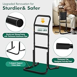 Ultimate Solution for Effortless Rising: The FORTEMOTUS Chair Stand Assist is expertly crafted with a sturdy and strong frame with the thickened aluminum pipe, and boasts a matte finish and smooth lacquer. This not only gives it a sleek appearance but also ensures maximum stability and durability. Supports up to 300 LBS, Note: Some C-shaped buckles may have be inserted into the tube The Epitome of Safety and Sturdiness: This upgraded model features a Y-shaped support with a widened base, ensuring maximum stability. The exclusive thickened, flat-designed anti-slip feet provide a non-slip grip, enhancing durability and safety, offering sturdy and secure support for smooth transitions from sitting to standing, making it a reliable choice for effortless rising Easily Customize your Comfort with Adjustable armrests: With four distinct height settings(32''~35''), seniors can choose the perfect level for various activities, such as standing up safely and securely, transferring from a wheelchair to a couch, or reaching items on high shelves and cabinets. This feature caters to individuals of different heights and preferences Effortlessly Portable throughout anywhere: Boasting a sturdy yet lightweight construction, the chair stands assist weight 2.2 lbs. As a standalone unit, it offers dependable support for smooth sit-to-stand transitions in any room, such as the living room or bedroom, without requiring attachment to furniture Comfort and Security Experience with Multiple Armrests Design: The lift assist for the elderly features 4 large, foam-padded handles that provide a firm grip and ultimate comfort. This innovative multiple-handle setup ensures stability and leverage during sit-to-stand transitions, reducing strain and minimizing the risk of falls. Elevate your mobility with confidence and ease