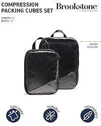 OFFICIALLY LICENSED BROOKSTONE: Travel Kit and Suitcase Organizer Car and Airplane Travel Essentials; Distinctive, innovative, and quality products for women, men, and kids of all ages MAXIMIZE LUGGAGE SPACE: Compress more in your suitcase with our innovative compression packing cubes that minimize bulk and maximize space. These luggage organizer bags are designed to make room for everything you need. Whether packing for a short getaway or a long trip, these packing cubes for travel compression are perfect for keeping clothes, accessories, and more neatly organized in your luggage. KEEP EVERYTHING ORGANIZED: Our packing cubes offer a seamless way to organize your clothing and gear. No more digging through messy suitcases! These suitcase organizer cubes make it easy to find exactly what you need while traveling. Ideal for use as a bag organizer for separating clothes, shoes, and accessories, these travel organizer bags fit perfectly in any suitcase or carry-on. DURABLE AND LIGHTWEIGHT: Crafted from premium materials, these compression packing cubes travel withstand the wear and tear of frequent travel. Lightweight yet sturdy, they help reduce the weight of your luggage while keeping your items safe. Ideal for business trips, vacations, or as part of your airplane travel essentials, these travel compression bags for packing are built to last through countless adventures. VERSATILE TRAVEL COMPANIONS: From toiletries to clothes, these packing cubes handle it all. Use them as a travel pouch, a compact travel kit, or a handy travel bag for any adventure. Whether you’re a frequent flyer or a casual traveler, these cubes serve as travel bags organizer for luggage, perfect for packing more efficiently and keeping your essentials organized on the go.