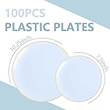 VALUE PACK: These blue plastic plates include 50 pieces 10.25 inch blue dinner plates and 50 pieces 7.5 inch blue dessert plates, more efficient party preparation EXQUISITE DESIGN: These elegant blue disposable plates are both beautiful and elegant. The design of blue plates with gold trim are full of art and mystery, exquisite and charming CONVENIENT: These blue party plates are disposable, which can save you energy and time to enjoy the joy after the party HIGH QUALITY: These high quality light blue plastic plates, stable for holding cakes, salads, appetizers and other foods, not easily deformed or collapsed. These light blue plates are perfect for all your needs MULTI-OCCASIONS AVAILABLE: These light blue disposable plates are suitable for various occasions not only at birthday parties, but also at reception, wedding, outdoor dinner, Easter and other occasions,adding an elegant touch to your party or banquet and impressing your guests.