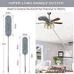 - Microfiber Feather Duster with Extendable Pole, 100-inch Extra-Long Dusters Telescoping Cobweb Duster for Cleaning, Bendable and Washable Microfiber Head, Duster for High Ceiling, Fan, Furniture