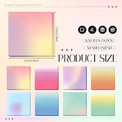 Fullhawl 400 Sheets Gradient Transparent Sticky Notes 3 x 3 Inch Clear Pastel Aesthetic Self-Adhesive Sticky Notes for Annotating Bible Journaling Office College Supplies, 8 Pads