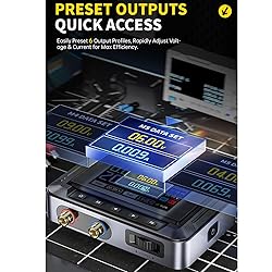 Wide Application: This DC power supply is widely used for experimental research, production testing, technical development, energy study, etc. Stable output, ultra-low : Stable voltage output without overshoot, suitable for powering sensitive devices. Excellent performance with current ripples as low as 20mV, ensuring efficient and stable output. HD color screen, reversible at will: Equipped with a 2.8-inch HD IPS color screen with 90 degree folding design, providing visibility from multiple angles and crisp display for an enhanced user experience. Real-time monitoring of voltage, current and power parameters. Multiple safety measures: Features over-voltage , over-current , over-load , over-temperature , reverse input , reverse output , under-voltage , short circuit . Protect your devices with comprehensive security features. Various input options: Supports PD, QC fast charging protocols, power banks and DC inputs. Versatile compatibility for on-the-go maintenance and troubleshooting anytime, anywhere!