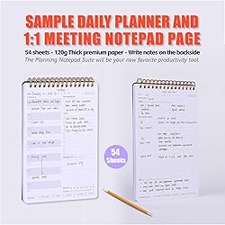 - Hand-Picked Office Organizational Tools If you’re looking for more ways to bring order into your life, here are our bestselling tools to help you stay organized and focused: This Productivity Notepad bundle includes: (1) Weekly To Do List Notepad - clearly see your tasks and next steps for all of your projects in one singular view. With 54 sheets, you're set for an entire year. (1) daily hourly schedule planner - your everyday tool for time-blocking tasks and hourly planning in a high-quality, lay flat to do list notebook. (1) 1:1 Meeting Notebook for Work - This spiral notepad is perfect for business people or education managers who have frequent meetings. Maximize your productivity, stay on top of tasks and projects, and make the most of your meetings each workday with this suite of special notepads. This productivity notepad suite keep you super productive and organized. A curated set of our best-selling notepads to help you stay organized, productive, and professional. With each of these notepads, we’ve identified the common roadblocks and demands of a typical workday and created a system that helps you conquer these challenges like a pro. Ideal for home, school, or office.