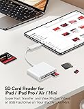 【USB C &USB-A SD card reader】: This SD card reader has a USB type C and USB-A dual connector, which is easy to transmit photos/videos and backup data to your USB-C laptop, phones and tablets. Compatible with MacBook Pro/Air, iMac, Mac. Compatible with iPad Pro 12.9-inch 6th Gen/5th Gen/4th Gen/3th Gen, 11-inch 3th Gen/2th Gen/1th Gen. Compatible with iPad Air 11-inch 5th Gen/4th Gen. Compatible with iPad 10.9-inch 10th Gen. Compatible with iPad mini 8.3-inch 6th Gen and Samsung Android more USB-A USB-C devices. 【Dual slot design】: USB SD card reader allows you to access multiple types of memory cards flexibly and conveniently. Compatible with SD, SDHC, SDHC, SDXC, Micro SD, Micro SD, Micro SD, Micro SDHC, Micro SDXC ,CF, Compact Flash, MS, Memory Stick, XD, XD Picture cards. 【Plug and play】: This TypeC SD card reader compatible with MacOS, Windows, Linux, Chrome. No driver, does not require additional third -party software, plug-and-play, very convenient and portable. For iPad, you only need to use the iPadOS built-in "Files" app for import and export. 【Compact Ports Friendly】:The SD card adapter is the assistant of the photographer, allowing you to immediately view the best moment of the lens. Friendly and compact port design. With the built-in expansion USB-C &USB-A cable of this SD card reader, you can save space and use ports side by side.