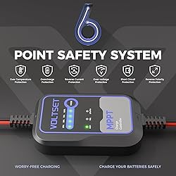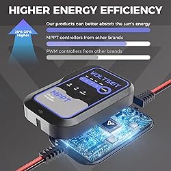 Voltset MPPT Solar Charge Controller : IP65 Waterproof - Display for Gel AGM Lead-Acid Lithium LiFePO4 Battery - Used in RV Marine Camper Van Truck Trailer (Mppt Solar Charge Controller use Below 50W)