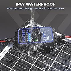 Professional 10A MPPT Solar Controller: This 10 amp solar charge controller is designed for 12V solar systems, perfectly matching solar panels up to 130W. Using pwm solar charge controller technology, it's an ideal small solar charge controller for solar charge controller 12v applications Wide Battery Compatibility: This solar panel charge controller is designed for 12V solar panels with a maximum current of 10A, and 12V rechargeable batteries. It works with 12V batteries such as LiFePO₄, AGM, GEL, and more. 100% Waterproof: The solar charge controller is built to last in any weather. It has a waterproof seal that keeps it safe from rain, snow, and dust. It’s perfect for outdoor use. Comprehensive Safety Protection System: Multiple protections including undervoltage, overvoltage, overload, short circuit, overcharge protection and solar panel anti-reverse connection. This solar regulator extends battery life with reverse polarity protection. Clear tri-color LED indicators show real-time status: Red/Blue (Charging), Blue (Sunlight), Green (Fully charged). No light indicates short circuit. The solar charge maintainer is solely solar-powered with zero battery consumption. Easy Installation Solution: Color-coded terminals (red positive, black negative) with included polarity converter. Supports 12v power supply solar systems. Comes as part of a complete solar charge controller kit for simple installation. Zero Power Consumption Standby: Solar powered battery tender design with zero battery drain when not charging. Ideal for automotive solar battery tender applications. The best choice for battery tender solar trickle charger needs. Compact Outdoor Design: Compact solar charge controller design suitable for solar charge controller outdoor use. Weatherproof solar charge controller features make it ideal for rv solar charge controller applications. Efficient MPPT Controller 12V Charging:Smart PWM controller 12v technology maximizes solar input for 12V batteries. Ideal solar panel controller 12v for small off-grid systems. Reliable battery regulator with zero standby consumption. Complete Package Contents: Includes 1 solar charge controller, 1 manual and 2 polarity converters. Backed by 12-month warranty and 24/7 technical support. A complete solar charging controller 12v solution.