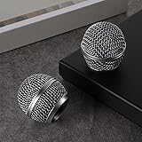 Microphone Head Replace Microphone Cover Microphone Windscreen Microphone Pop Filter Microphone Ball Head Mesh with Inner Foam Microphone Replacement Grille for Shure Sm58, 2 Pcs, Silver
