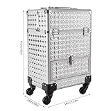 - DescriptionA good hairstyle and makeup can bring us a new look, but messy tools often affect our work efficiency. Our rolling makeup train case can eliminate your concerns very well. Made of high-quality aluminum alloy, ABS, density board, and flannelette, this case is durable and not easy to rust, so you can use it for a long time and save costs. In addition, the large capacity and compact design can provide convenience for your daily use and carry. With the help of this product, your items can be organized neatly.DetailsRemovable Universal Wheels: This case is equipped with four detachable wheels which are tightly wrapped with 12mm/0.47inch plastic cement, which allows you to move flexibly with low noise.Practical Handle and Pull Rod: There is a handle on the top of the product and a pull rod fixed by two buckles and with three gears, which provides more convenience for you to move and carry it, and it can also meet the needs of people in different heights.Round Corners: The case adopts thickened alloy anti-collision corners and is fixed with 3 rivets, which are solid and stable, just like the armor to protect the product from collision and fall, and it also can better protect your safety and prevent skin from being scratched.Two Keys: Two high-quality keys are provided in the package of the product, which is convenient for you to open and close the product.ApplicationThis rolling makeup train case can be widely used by hair stylists, pet groomers, makeup artists, and so on for storing scissors, makeup, jewelry, combs, and other items. In addition, it is also very suitable for you to store tools or daily necessities when you go out.SpecificationsMaterial: Aluminum Alloy, ABS, Density Board, and FlanneletteSurface Treatment: IndentationColor: Silver, Pink, Black silver frame, Black black frameStyle: ModernShape: RectangularBearing Capacity: About 20kg/44.09lbsNumber of Items: 1Number of Wheels: 4Gears of Pull Rod: 3Number of Compartments: 7Number of Drawers: 1Net Weight: 5.8kg/12.79lbsGross Weight: 6.8kg/14.99lbsProduct Size: 34*25*47cm/13.4*9.8*18.5inchPackage Size: 38*29*54cm/14.96*11.42*21.26inchLength of Pull Rod: About 80cm/31.5inchPackage Included1*Rolling Makeup Train Case2*KeysNotes1. Please remember always lift the case with the top carrying handle when going upstairs.2. Please note that the four wheels of this product are not equipped with brakes.