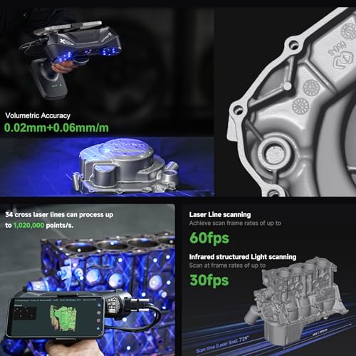 - Versatile Light Sources: Equipped with three light sources (blue, white, and infrared), it enables simultaneous cross-laser (34 lines), parallel-laser (7 lines), and infrared scanning. This versatility allows for scanning different materials and complex shapes with ease.
