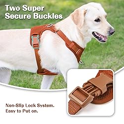 No Pull Dog Harness for Small Medium Large Dogs - Adjustable 2 Layer Mesh Dog Vest with Dual Clip, Escape Proof, Quick Release, Lightweight Breathable Mesh for Walking Hiking (Carmel Brown,L)