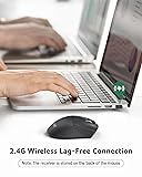 [55G Lightweight Mouse] At just 55g, this laptop mouse allows you to glide effortlessly, reducing wrist fatigue and enhancing comfort for long hours of work. Experience quicker response times with less effort—perfect for long-hours office work. 📌📌If the mouse isn’t suitable, place the USB receiver in its battery compartment and return both. [Quick Navigation Buttons] This wireless mouse with side buttons features forward and backward buttons, making it easier to navigate through web pages and folders. Boost your efficiency by effortlessly switching between tasks with a simple click. 📌Note: The mouse does not have DPI adjustment and is fixed at 1200 DPI. [Plug and Play] Just insert the USB-A receiver into your Windows, macOS, or Linux device for instant use—no drivers or software needed. The 2.4GHz wireless technology ensures a strong and dependable connection up to 32 feet. [Crisp Clicky] The crisp "Clicky" sound of the computer mice is closely linked to the sense of efficiency in both work and play, providing a unique experience. The sound of laptop mouse wireless creates a sense of rhythm, allowing users to stay more focused and engaged, while also relieving stress. [Exceptional Durability] Engineered for long-lasting performance, this desktop mouse wireless features buttons and a scroll wheel tested to endure up to 10 million clicks. The USB mouse wireless shock-resistant structure safeguards against drops and impacts, guaranteeing reliable performance and continuous productivity. NOTE: 📌The USB A receiver stores inside the mouse's battery compartment. The AAA batteries are not included.