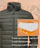 WARMTH----The outer layer is made of windproof nylon, the middle layer is made of soft polyester synthetic insulation lining, and the inner layer locks in heat for warmth and comfort. WATER RESISTANT----The outer layer uses a special waterproof coating (DWR) to keep you dry in light rain or wet conditions. EASY TO PACK----Made of ultra-light insulation material, it weighs less than 0.5kg. It is easy to carry when traveling or hiking. COLD WEATHER DESIGN----The stand-up collar, full zipper and elastic cuffs and hem can block wind and snow and wrap your body perfectly. 4 pockets can store items. VERSATILITY----This Puffer jacket is fashionable and easy to match. Suitable for spring, autumn and winter. It can be used for outdoor sports such as traveling, hiking, camping and daily wear.