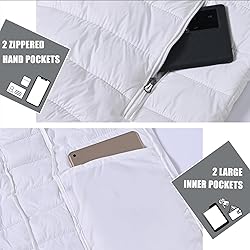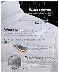 WARMTH----The outer layer is made of windproof nylon, the middle layer is made of soft polyester synthetic insulation lining, and the inner layer locks in heat for warmth and comfort. WATER RESISTANT----The outer layer uses a special waterproof coating (DWR) to keep you dry in light rain or wet conditions. EASY TO PACK----Made of ultra-light insulation material, it weighs less than 0.5kg. It is easy to carry when traveling or hiking. COLD WEATHER DESIGN----The stand-up collar, full zipper and elastic cuffs and hem can block wind and snow and wrap your body perfectly. 4 pockets can store items. VERSATILITY----This Puffer jacket is fashionable and easy to match. Suitable for spring, autumn and winter. It can be used for outdoor sports such as traveling, hiking, camping and daily wear.