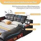 Modehodei Luxury Queen Size Bed Frame, Modern Multifunctional Bed with Massage Recliner | Bluetooth Speaker | USB Charging Station | Adjustable Headboard, PU Leather Fabric, Bedroom Furniture