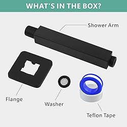 AMERICAN STANDARD THREADS - Universal connection 1/2 NPT tapered thread for all standard 3 to 16 inch fixed rainfall showerheads. RELIABLE MATERIAL - Voolan square shower arms are made of thickened 304 stainless steel to ensure rust, leak and durability. Ideal for wet environments. Designed for rain shower heads. HIGH PRESSURE - Say goodbye to other low-pressure shower arms, our shower arm maintains consistent water pressure and water flow in the shower. Give your family a hotel-style spa shower experience. MODERN LOOK - Chrome/brushed nickel/matte black, multiple colors available to create a modern and luxurious feel to your bathroom decor. QUICK INSTALLATION - Includes flange and Teflon Tape, making installation very easy and completed in minutes without the need to call a plumber.