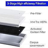 COMPATIBLE MODEL: E-400 & ClearAir-A7 Replacement Filter Compatible with AromaRoom E-400 and VEWIOR ClearAir-A7 Air Purifiers. VALUABLE PACKAGES: Get the 2-Pack High-efficiency E-400 & ClearAir-A7 Filter with Activated Carbon Pre-filters at an affordable price to save significant money on your annual air purification needs. 3-in-1 FILTRATION: Our E-400 & ClearAir-A7 Replacement Filter adopts 3-in-1 True HEPA Filtration technology, which Includes H13 True HEPA Filter with Activated Carbon and Pre-Filter. H14 TRUE HEPA: Usually made of high-efficiency filter materials such as glass fiber and polypropylene fiber, it has high filtration efficiency and dust holding capacity, low resistance, easy installation and maintenance. High efficiency Activated Carbon: Using aluminum honeycomb, plastic honeycomb and paper honeycomb with through-hole structure as carrier, compared with traditional activated carbon filter, it has better gas dynamic performance, small volume density, large specific surface area, high adsorption efficiency and small wind resistance coefficient.