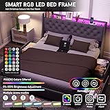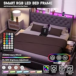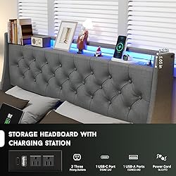 ✅【Smart RGB LED Lights】The headboard of this full size bed frame has built-in LED lights and the lights support 12 colors, 4 mode adjustments and 3 brightness modes. Whether you need bright, clear light for bedtime reading or a peaceful, soothing atmosphere at night, you can find the ideal lighting effect at the touch of a button. ✅【4 Sliding Storage Drawers】This bed frame full size comes with four large drawers that provide extra storage space for bedding, clothes, hats and more. Each drawer is equipped with rollers for easy sliding in and out of the drawers. ✅【Convenient Charging Station】The built-in charging station is equipped with USB, Type - C and 2 standard power outlets, so whether it's your smartphone, tablet, e-reader, or other small electronic device, it's easy to find the right port to charge it without the hassle of finding a charger or outlet. ✅【Sturdy Metal Construction】This full size bed frame with storage is made of high quality metal for durability. The sturdy frame can withstand up to 800 pounds to ensure long-term stability and reliability. The metal is carefully treated to prevent rust and corrosion, maintaining its sleek appearance over time. ✅【Advanced Design - No Noise Free】This full size bed frame with headboard adopts advanced design, the metal parts are firmly connected, minimizing the friction between the metal parts, which can effectively prevent the gray bed frame from squeaking and provide you with a comfortable and quiet sleeping environment. In addition, this full bed frame does not require springs. ✅【Easy to Assemble & Service】If there are missing parts or damaged accessories and so on, please contact us at the first time, we will reply and help you solve the problem within 24 hours. The package contains all the accessories and assembly instructions for the full size platform bed frame, each part is labeled, you can install it according to the instructions or the led full bed frame installation video.