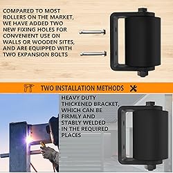 【Heavy duty steel and hard nylon】The Sliding gate rollers is made of hard nylon,Thickened bracket, durable and wear-resistant, extending service life 【Heavy Duty Bracket】Compared to most brackets, has increased thickness and is more sturdy and durable. Considering practical applications, two installation holes are reserved on the bracket and equipped with two expansion bolts. Expansion screws can be used to install on wooden piles or walls according to one's own needs, or the bracket can be welded to the required iron columns. It has multiple scenarios for application 【Double Bearing】:Embedding bearings at both ends of the roller can make the roller smoother and quieter during use, reducing the friction force of the roller and increasing its lifespan 【Easy to Operate】: The bracket is sturdy and can be welded to the support frame or fixed in the desired position using expansion bolts, without the need for additional drilling on the bracket. It is very suitable for heavy-duty sliding doors and rolling fences 【3IN/ 6 IN Options】We have two different sizes of guide rollers: 3 inches, 6 inches It can meet the needs of most sliding door usage options and is the perfect partner for sliding doors