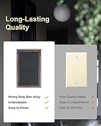 Timeless Appearance - Traditionally styled with simple, clean, and elegant lines and brushed texture, our blank wall plate covers add a touch of elegance and sophistication to your decor. With its classic and timeless look, it effortlessly complements any style of decor and enhances both the practicality and elegance of your space. Durable Solid Zinc Alloy - Constructed from thick and sturdy zinc alloy, the wall plate cover offers exceptional durability and sturdiness, easier to clean and maintain. It is resistant to high impact, tarnishing, and corrosion, unbreakable. Ensuring it remains a stunning addition to your home for years to come. Easy Installation - The package includes matching painted screws for a uniform and seamless look. Effortlessly upgrade your space in minutes. It's a simple and effective way to give any room a fresh and updated look. Wide Application - Versatile and easy to match. These blank outlet covers will cover up the imperfections of the wall, making your home more safe and neater. Complements any interior style, whether your decor is modern, traditional, or contemporary, this plate seamlessly blends in and glams up your wall. Specification - Pack of 2 blank metal wall plates, size at 3.15''W*4.92''H. Easy replacement of any wall plate with the same configuration. Backed by a one-year warranty to ensure your peace of mind and complete satisfaction.