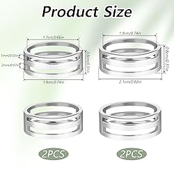 You will get: 4pcs jump rings opening tools, 2pcs inner diameter of approximately 17 mm/0.67 inches, an outer diameter of approximately 19 mm/0.75 inches, 2pcs 2.1*0.8cm/0.83**0.31inch,Inner Diameter 1.9cm/0.75inch. There is an abundant quantity available to meet your daily replacement needs. The wide width of the jump rings opening tools allows you to handle various sizes of jump rings, providing convenience and saving you time Practical design: Each stainless steel jump rings opener has four grooves on both sides, allowing you to open or close spring rings from different angles. The combination of silver and black adds a touch of classic beauty and simplicity, making it versatile for both practical use and as a decorative rings to enhance your style Easy to use: These jump rings opening tools help you effortlessly open and close jump rings, protecting your fingers while providing increased strength. The circular jump rings tool is an essential tool for various DIY projects in your daily life, making it highly practical and time-saving Reliable materials: The open-close rings tools are made of high-quality stainless steel, which ensures durability, resistance to deformation, and rust-free properties, allowing for long-term use. They are lightweight and easy to use, providing a comfortable experience even when worn for extended periods of time. With their small and exquisite design, they are also easy to store and carry Widely Used: You can apply the jump rings opening tools to different DIY projects, such as jewelry making, repairing necklaces, bracelets, pendants, earrings, and opening and closing jump rings in DIY jewelry creations. They can also be used to adorn your overall style when worn as rings.
