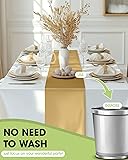 UNIVERSAL FIT: Pureegg disposable plastic table runner measures 14'' x 108'', making it appropriate for tables 6 to 8 feet long and seating 6 to 8 guests. Its universal size delivers coverage along the table's center, creating a neat and polished look for your table setting. CONVENIENT MULTI-PACK SET: Featuring a 10-pack of disposable plastic table runners, this set is designed to support use across multiple tables or occasions. The multi-piece format allows for flexible setup, simplifying both preparation and post-event cleanup. STAIN-RESISTANT & ODORLESS PLASTIC: Made from odorless plastic material, this gold runner features water- and stain-resistant properties to handle accidental food spills. Liquids stay on the surface for easy wiping, while the material prevents scratches to protect your tabletop. This helps the runner maintain a clean, neat appearance throughout any event. EASY CLEANUP: This single-use table runner is designed for convenience and requires no washing or maintenance. After your gathering, simply discard the runner for a quick cleanup, making it suitable for bridal showers, baby showers, anniversaries, and other special events. VERSATILE APPLICATION: Pureegg plastic table runner can be easily paired with tablecloths in various colors, making it suitable for multiple holiday themes. Whether for Valentine's Day, Thanksgiving, Christmas, or Boho-themed feasts, this table runner complements your table décor.