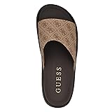 The GUESS Magaria slide has a modernized twist and GUESS signature quattro G logoing for added appeal. These slides can be worn to more than just the beach. Est. 1981, Guess is a global lifestyle brand and a symbol of a young, adventurous lifestyle. Open/Round Toe ; Slip-on Closure Man Made Upper 1.26" platform