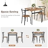VECELO 3 Piece Dining Table & Chairs Set for 2, Metal and Wooden Square Kitchen Dinette Set for Small Space, Breakfast Nook, Saving Space, Brown