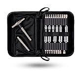 ALL PURPOSE TOOL KIT - The Fix It Sticks All Purpose Driver Toolkit is your ultimate companion for tackling repairs and adjustments wherever you go; This purpose-built tool set fits easily in your glovebox, ensuring you're always prepared for unexpected fixes; This special combo also includes both All-in-One Torque Driver (15-65 in-lbs) and Mini All-in-One Torque Driver (6-25 in-lbs) RATCHETING T-WAY WRENCH WITH LOCKING HEX DRIVE - This Ratcheting T-Way Wrench has a locking, spring-loaded magnetic hex collar that holds 1/4" bits securely in place at any angle; So not only can you quickly tighten or loosen fasteners in tight spots, you can do it without worrying about losing a bit; This wrench also works with Fix It Sticks Cleaning Rod System, helping you clear obstructions or do a quick cleaning in the field HANDLE EXTENSION FOR EXTRA REACH - An included in the toolkit T-Handle extension offers additional leverage and reach for those hard-to-access fasteners; Whether you're working on a vehicle, gun, or any other project, this extension provides the extra torque needed to make adjustments easier and more efficient SOCKET & BIT SELECTION - 1/4" Drive Sockets (22); SAE: 5/32", 3/16", 7/32", 1/4", 9/32", 5/16", 11/32", 3/8", 7/16", 1/2", 9/16"; Metric: 4, 5, 6, 7, 8, 9, 10, 11, 12, 13 & 14 mm; 1/4" Electroless Nickel Plated Hex Bits (46); SAE Hex: 0.050", 1/16", 5/64", 3/32", 7/64", 1/8", 9/64", 5/32", 3/16", 7/32", 1/4", 5/16"; Metric Hex: 1.5, 2, 2.5, 3, 4, 5, 5.5, 6, 8 & 10 mm; Torx: 6, 8, 10, 15, 20, 25, 30, 35, 40, 45; Phillips: 0, 1, 2(x2), 3; JIS: 0, 1, 2, 3; Slotted: 3, 4, 5, 6 & 7mm DURABLE CARRYING CASE - This Fix It Sticks tool kit includes a soft carrying case with molded bit holders designed to hold any accessory with a standard 1/4" Base; This durable case keeps your tools, bits, and accessories neatly organized and protected, while a magnetic Velcro patch keeps small screws or parts from getting lost