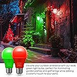 • Red AND Green Light Bulbs [2 Pack], Christmas Light Bulbs, A19 LED Red Light Bulbs Outdoor, Green Light Bulbs 9W (60 Watt Equivalent) - E26 Colored Light Bulbs for Porch Light Christmas Party Home Decor
