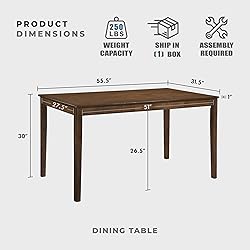 [Contemporary Charming] Our affordable dining room chair boasts a modern design that complements any decor with casual elegance. Versatile and stylish, it enhances offices, kitchens, living rooms, dining rooms, bedrooms, cafes, restaurants, and more. [Well Crafted] This modern dining table, made from high-quality rubberwood and engineered wood, offers strength and durability. Its stable design prevents shaking and fits any kitchen and dining area, seating 2 to 4 people-perfect for small families. [Dimensions] Wood dining table measure L55.5" x D31.5" x H30", Weight Capacity: 250lbs. The wooden dining tables have a smooth surface that’s easy to clean. [Easy Assembly & Clean] The package contains step-by-step illustrated instruction. Tool is included. No need to worry about the assembly. It’ll just take you 20 minutes. Assembly Instructions are available on this page [Peace of Mind Warranty] We offer a 1-year limited warranty, and if you have any issues with the product you purchased, please feel free to contact us