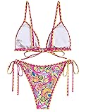 String Bikini: Crafted from soft fabric, bikini sets for women are designed for all-day comfort. The breathable, stretchy material ensures a snug fit while allowing for easy movement Push Up Bikini Top: Womens bikini featuring a removable padding, adjustable straps and trimmed with hand-cut whip-stitch edges. The classic triangle design offers adjustable coverage Low Waisted Bottom: Cheeky high cut bikini bottoms elongates your legs.The stylish tie side feature provides a secure and adjustable fit Occasion: Brazilian bikini sets for women is perfect for beach, vacation, cruise, pool, dating, summer party, concert, causal wear, etc Our Size: S-US 4, M-US 6, L-US 8, XL-US 10, 2XL-US 12.Please refer to our size detail in description before ordering