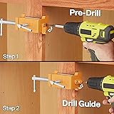 All-in-One Cabinet Clamp & Drill Guide System – These cabinet clamps for installing cabinets combine tightening, aligning, pre-drilling, and securing into one smooth step. Built-in flip-away drill guide creates perfect pilot holes without removing or repositioning the cabinet installation clamps, saving time on every install. Heavy-Duty Cabinet Installation Tools Built to Last – Made from solid cast steel with an aluminum alignment plate, these cabinet face frame clamps deliver industrial strength with 300–600 lbs of clamping force. Rust-resistant and designed for long-term use in professional cabinet making tools and woodworking tools setups. Precision Alignment for Face Frames & Doors – Designed as a reliable cabinet alignment tool, these face frame clamps ensure boards, stiles, and frames sit perfectly flush. Ideal cabinet tools for installing cabinets, bookshelves, and door projects where accuracy matters. Scratch-Free Protection with EVA Pads – Unlike standard felt pads, these cabinet installation tools feature high-density EVA padding on all contact points. Your cabinet finishes stay protected while using these cabinet clamps, door clamp, or other cabinetry tools. Complete Cabinet Tool Kit with Storage Case – Includes four (4) heavy-duty cabinet clamps, EVA protective pads, and a durable storage box. Compatible with stiles up to 1-1/4" thick and 4" clamp capacity, making this set an essential cabinet tool, tool cabinet accessory, and upgrade for any tool cabinets or workshop.
