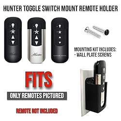COMPATIBILITY - Fits only remotes pictured - this is not a universal fit! TOGGLE SWITCH PLATE MOUNT - Fan remote holder is designed to mounted on top of the Toggle Switch plate making it convenient for use. It can be used as a remote stand. MOUNTING HARDWARE - Wall plate screws included MADE IN USA – Manufactured using 3D printing technology by a family small business based in SoCal Also Available in White Color Variation!