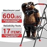 Heavy-Duty Performance and Durability - 3 step stool ladder that's built to last, with the capacity to hold up to 600 pounds , is ideal for heavy-duty use. Crafted from thickened 9mm Alloy Steel, these ladders are resistant to wear, corrosion, rust, and temperature extremes, ensuring long-lasting performance and durability. They are perfect for ladders for home and step stools for adults, providing a reliable solution for all your height-related needs. Enhanced Safety and Stability - Featuring a high-strength steel frame and gravity lock system, our step ladders offer robust support that engages securely for your peace of mind. With Dual-Sided Reinforcing Ribs, Our ladders provide a sturdy and reliable climbing experience, ensuring stability and reliability in every use. This makes them ideal for kitchen step stools for adults and stepping stool for adults, offering a safe and secure option for reaching high places. Non-Slip Ergonomics for Confident Use - Our ladders are designed with wide, non-slip iron treads for heel-to-toe support and sponge-covered handrails for a firm, comfortable grip that gives you confidence when climbing the ladder. Our ladders come with large rubber feet that grip the ground securely to prevent movement and scratches to the floor. The unique curved design gives more leg room and protects your legs from knocks. Ultra-Portable and Space-Efficient Design - Folding down to an astonishingly slim profile of just 2.95", our step stool ladders are the perfect space-savers for your home. Ideal for storage in closets, under beds, or behind doors, our fully assembled ladders are ready to use out of the box, saving you time and effort. This makes them the ultimate foldable step stool and ladder for home use. Versatile Functionality and Aesthetic Appeal - Transform your space with our ladders that double as beautiful plant stands or elegant storage solutions when not in use. Modern design blends seamlessly with your home decor, making them an aesthetically pleasing addition to your home, kitchen, Step stools and stepping stools that can be used in various settings.