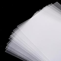 - ElevateTech Clear Plastic SheetCategory: Plastic SheetsColor: TransparentMaterial: PVCHigh flexibility: Our clear acetate sheets are easy to manage and store. The thin plastic sheet won't stretch, replicate images accurately and repeatably.Clear acrylic sheet can be used on the surface of objects that bend 360 degrees, very flexible, can be rolled up, and will become flat again after unrolling.Function: Transparent plastic board for DIY craft projectsProduct size: 11.7× 8.3 × 0.04 inches/ 29.7× 21 ×0.1 cmPacking list: 10pcs plastic sheet