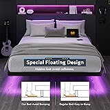 - Modern Floating Bed Frame with LED LightsTransform your bedroom into a modern sanctuary with our innovative metal floating bed frame. This floating bedframe combines style and functionality, offering a unique hovering visual effect that enhances the aesthetic of any bedroom.Size Options: Twin, Full, Queen, KingColor: BlackKey Features:High Weight Capacity: This floating platform bed frame supports up to 1000 lbs, ensuring a robust and durable structure.Charging Station: Equipped with built-in Type-C, USB ports, and 2 standard outlets, it easily meets all your charging needs, keeping your smart devices powered up and ready.Adjustable LED Lighting: The built-in LED strip lights on this black floating bed frame can be adjusted for color and brightness via a remote control or smartphone app, creating the perfect sleep ambiance. Securely fastened with Velcro straps and zippers, the LED strips stay in place, eliminating the issue of falling lights.Durable and Stable Construction: The floating bed frame with led lights is supported by 11 reliable metal slats and 9 sturdy legs with a triangular design, enhancing overall stability. Made from high-quality materials and crafted with precision, the metal bed frame ensures long-lasting durability and stability.Noise-Free Sleep Experience: Meticulously designed joints and a robust structure ensure a noise-free experience, providing you with a quiet and comfortable sleeping environment.Why Choose Our Bed Frame?Modern and Stylish Design: The floating effect adds a unique, contemporary aesthetic to your room.Advanced Lighting Options: Easily customize your lighting for any mood or occasion.High-Quality Materials: Built to last with strong weight-bearing capacity.Easy Assembly: Simplified design ensures quick and hassle-free setup without the need for complex tools.
