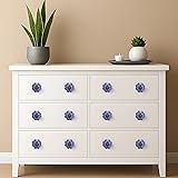Ajuny Ceramic Knobs Blue Hand Painted Cabinet Drawer Cupboard and Furniture Pulls for Kitchen Bathroom Dresser Glossy Decorative Handles Pumpkin Knobs Set of 6