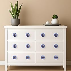 - The Ajuny Ceramic Cabinet Dresser Drawer and Furniture Hand Painted Pumpkin Shape Boho Pull Knob is a perfect blend of functionality and artistic elegance, designed to elevate your home decor. These ceramic knobs are ideal for drawers, chests, dressers, bathroom and kitchen cabinets, and cupboards, offering a comfortable grip and easy handling with their ergonomic design. What makes these knobs truly unique is their intricate hand-painted traditional Indian motifs. Each knob features beautiful patterns, drawings, and vibrant colors, bringing elegance and cultural charm to any space. Whether it’s your dressing room, bathroom, or kitchen, these knobs add a distinctive touch of sophistication to your decor. Installation is straightforward—simply drill a hole in your cabinet or drawer and secure the knob with the provided 2.75-inch screw, ensuring a robust and durable fit. With a top diameter of 1.5 inches, these knobs provide a comfortable and firm grip for daily use. Handcrafted by skilled artisans from Khurja, Uttar Pradesh, India, these knobs represent a rich pottery heritage, combining artistry with functionality. By choosing these knobs, you support traditional artisans and contribute to preserving their cultural legacy. Upgrade your furniture with the Ajuny Ceramic Hand Painted Pumpkin Shape Boho Pull Knobs, adding a unique and artistic ambiance to your living spaces. Transform your home with these exquisite ceramic knobs that seamlessly merge style, tradition, and practicality.