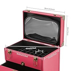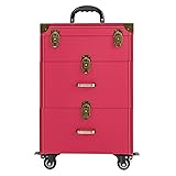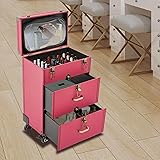 EcoTypee Rolling Makeup Trolley Case, Makeup Train Case with Keys Swivel Wheels, Makeup Suitcase Organizer on Wheels for Nail Tech Hairstylists (Rose)