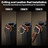 Universal Compatibility: The shoulder strap includes an o-ring and leather pad, which compatible with various camera shoulder strap loops. Suitable for all brand mirrorless cameras and DSLR. Premium Material: Made of high strength nylon climbing rope and genuine leather, the joints are hand stitched with premier genuine leather, offering the strap style and durability. This strap features an integrated neck pad that protects the neck from chafing!!! It can be comfortably worn around the shoulder or neck. Unlike other rope neck straps, which can rub against the back of the neck after prolonged use. Easy Installation: Simply thread the leather strap through the camera shoulder strap loop to use. The shoulder strap supports can be threaded through the lug mount and rivet, allowing for vertical camera hanging when used with an L-shaped grip. Length: The nylon braided cord strap has a length of 110 cm /43.3 in and a width of 2.2 cm /0.87 in. Its length caters to the needs of a wide range of camera users. Lightweight and Portable: Weighing just 53g/1.87 oz, this camera shoulder strap minimizes strain and discomfort on your neck or shoulder. With a static load capacity of 10 kg/22 lb, it combines durability with a vintage style