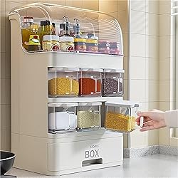 - This kitchen spice rack is a great helper. It has transparent doors for easy item - finding. Cleaning is a breeze with a simple wipe. Its cabinets, drawers and grids are designed to store various - sized seasonings. It can be detached for double space. Size: 30X24.5X39.5 CM/11.8X9.6X15.6IN 30X24.5X49.5 CM/11.8X9.6X19.5 IN Material:Plastic Style:Simplicity Package List: 1/Spice Rack Usage:Kitchen Note: 1. The product picture does not include products other than the product. 2. Please confirm the color and size before purchase. 3. Manual measurement, there may be some small error, please prevail in kind, thank you! 4. Due to different light, shooting angle or light under the monitor, there may be a slight color difference, please understand.