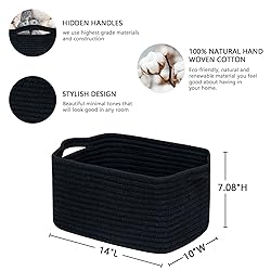 CubesLand Cube Storage Organizer Basket Bin, Rectangular Cotton Rope Basket, 14x10x7.08Inches, Black