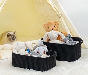 - Upgrade Everyday Living with CubesLands' small Cotton Rope Baskets: Perfect for Chic Organization Throughout Your Home! CubesLands’ modern cotton rope storage basket - designed to bring order and beauty wherever you place them. The stylish organizers are your go-to for banishing clutter with a touch of flair. Whether it's your nursery, bathroom or office, the storage baskets for shelves & more make it a joy to find a place for everything, effortlessly turning chaos into organized bliss. Brighten up your decoration effortlessly with the beautiful cotton rope baskets. Their stylish colors complements any interior, from modern living rooms to cozy nurseries. Use them as bathroom storage bins, as a changing table organizer, for neat nursery organization or to tidy up your office and home-schooling essentials. Sizes: 14x10x7.08". The lightweight and sturdy organizing baskets are super practical and also a chic eye-catcher. Whether you're arranging toys in the nursery, tidying your desk, or organizing toiletries in the bathroom, the basket set effortlessly integrates into your daily routine.