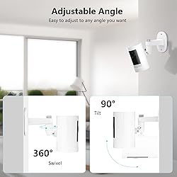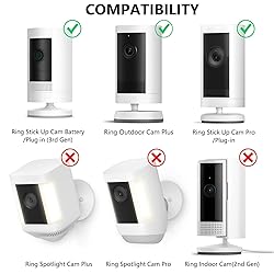 Compatibility: This ring camera mount is specially designed for Ring Stick Up Cam Battery/Plug-in 3rd Gen/Stick Up Cam Pro Battery/Ring Outdoor Cam Plus 2K, also fit for other cameras with standard 1/4 threaded hole Adjustable View Angle: Ring stick up camera mount is cleverly designed to allow your ring camera to rotate 360° and tilt 90°, making it easy to adjust to the best viewing angle to fully ensure your home security Stable and Sturdy: This ring mount is made of premium materials. Whether it is installed on the wall or ceiling indoors, or in a wide and high place such as the garden or roof outdoors, it can provide a stable support for Ring camera Two Easy Installation Ways: Just use strong adhesive tape to easily stick to smooth surfaces such as tiles, metal, glass, or choose traditional screw installation, which is suitable for all types of walls Indoor or Outdoor Use: Durable ABS plastic base not only resistant to oxidation, but also able to withstand various weather conditions, suitable for indoor and outdoor use