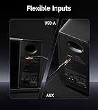 [Quality Sound Performance]: The QR30 features 2.75" mid-bass long-throw drivers and 0.75" silk dome tweeters. Driven by a high-efficiency Class-D amplifier, it delivers 30W (RMS) of total power with rich details and good bass response, all while maintaining a compact footprint [Bluetooth V5.4 & Multipoint Connections]: With Bluetooth V5.4, the QR30 offers stable audio streaming and can connect to two devices simultaneously, making it easy to switch between sources [Flexible Inputs]: The USB-A and 3.5 mm AUX wired inputs provide simple connections to computers, turntables, and other devices [Splendid Light Effects]: The integrated lighting system features our patented TempoAbyss technology, which provides 12 preset effects that can be customized via the app. You can adjust the brightness or change the lighting effect using the “Lighting Effect” knob [Easy Control]: Easily control playback mode, volume, and lighting effects using the side-mounted knobs [Mobile App and Computer App]: Download the Edifier ConneX Mobile App or Edifier TempoHub PC App and enjoy playback controls, sound switching, EQ customization, manuals, settings, and more [Compact Form & Modern Design]: With dimensions of 4.41" (W) x 7.60" (H) x 5.59" (D), the QR30 fits perfectly into any workspace while delivering quality sound. Its sleek and minimalist look complements any desk, adding a stylish touch without being overpowering