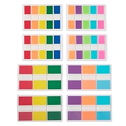 COMPLETE SET: 8 sets of 640 sheets of multipurpose sticky tab and flag sheets with 8 pop-up dispensers VERSATILE USE: Ideal for labeling within documents marking pages, and drawing attention to critical information or signature lines EASY TO USE: Plastic sticky tabs and page flags in bright colors add notice ability; suitable for color-coded indexing EASY WRITING: Removable sticky tabs and flags can be written on with various writing instruments and leave no residue CONVENIENT SIZE: 4 sets of 0.94 x 1.73-inch tabs; 4 sets of 0.47 x 1.73-inch flags; includes 8 pop-up tab and flag dispensers. Due to factors such as screen display or shooting lighting, the actual product may have a color difference from the image