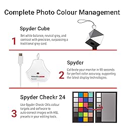 COMPLETE TOOLKIT FOR PRECISION COLOUR: Set your camera's white balance with Spyder Cube. Create an accurate HSL colour preset for your shoot with Spyder Checkr 24. Ensure true-to-life colour accuracy and consistency with the 2024 Spyder monitor calibrator CONSISTENT AND ACCURATE COLOURS: 2024 Spyder monitor calibrator ensures true colour accuracy and consistency, so you can be confident that the colours you capture in your photos are the ones you'll see when your images are displayed and shared COMPATIBLE WITH THE LATEST MONITOR TECHNOLOGIES: Even factory-calibrated monitors need to be recalibrated to your working environment. The 2024 Spyder works with a wide range of technologies including OLED, mini-LED, and XDR Retina Display ACCURATE WHITE BALANCE: Spyder Cube ensures proper white balance, which is essential for colour accuracy. Its patented 3D design does more than a grey card. Set absolute white and zero black values and define your neutral grey for an ideal contrast ratio PRECISE COLOUR FROM YOUR FIRST SHOT: Use Spyder Checkr 24’s spectrally engineered colour targets and its software to colour-correct your image capture automatically through HSL presets in your editing software