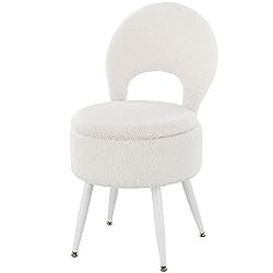 - Your Ultimate Vanity Stool Chair with Storage Elevate your vanity experience with the ZYKZYK Ottoman - a versatile and stylish furniture piece that is a must-have for any bedroom or dressing area. This all-in-one vanity stool chair combines functionality with luxury to provide you with the ultimate seating solution. Featuring a soft faux fur seat, this comfy chair is wonderful for long grooming sessions or simply relaxing in style. The adjustable folding backrest offers additional support when needed, allowing you to customize your seating experience. The sturdy construction ensures durability and stability, making this vanity stool chair a long-lasting addition to your space. With a plush velvet finish, the ZYKZYK Ottoman exudes sophistication and elegance, adding a touch of luxury to your room. The round design of this footstool with storage is not only trendy but also space-saving, ideal for smaller areas. Say goodbye to cluttered spaces with the integrated storage compartment, providing a convenient solution to keep your essentials within reach yet out of sight. Store your makeup, hair accessories, or any other items neatly tucked away for a clean and organized look. Whether you are looking for a vanity chair, vanity stool, or simply a cute and functional addition to your room, the ZYKZYK Ottoman ticks all the boxes. Its sherpa upholstery adds texture and coziness, inviting you to kick up your feet and relax. Upgrade your bedroom decor with the ZYKZYK Ottoman - the perfect blend of style, comfort, and practicality. Transform your vanity area into a chic and inviting space with this multifunctional piece. Get your hands on the ZYKZYK Ottoman today and experience the luxury of a premium vanity stool chair with storage.