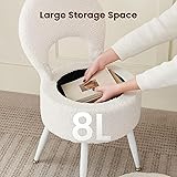 Luxurious Design: Elevate your bedroom decor with this stylish and versatile round ottoman that doubles as a comfy chair for your vanity. The plush velvet finish adds a touch of elegance to any room Smart Storage Solution: Say goodbye to clutter with the convenient storage compartment that is wonderful for keeping your beauty essentials within reach. Keep your space organized and chic Adjustable Comfort: The adjustable folding backrest allows you to customize your seating experience for maximum comfort. Enjoy the cozy sherpa upholstery while you prepare for your day Sturdy Construction: Built to last, this vanity stool chair features a sturdy frame that can support your weight with ease. Rest assured knowing you have a reliable piece of furniture by your side Versatile Functionality: Whether you use it as a vanity stool, a footstool with storage, or simply a statement piece in your room, the ZYKZYK vanity stool is sure to impress with its cute design and practical features